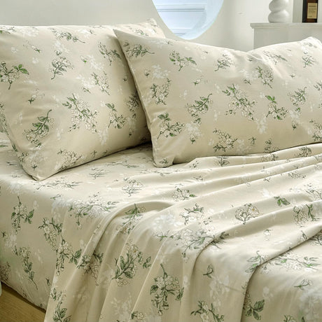 - Floral Bed Sheets, 4-Piece Sheet Set, Cute Botanical Shabby Chic Coquette Cottagecore Flower,