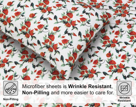 Deep Pocket Full Sheets Floral,4 Piece Sheet Set Breathable and Cooling,