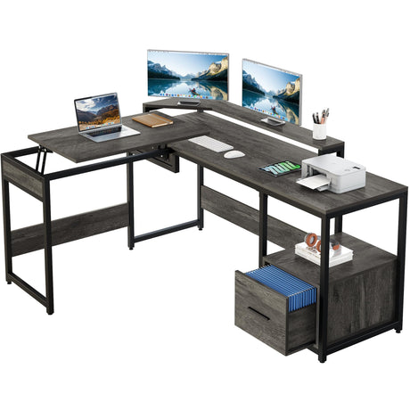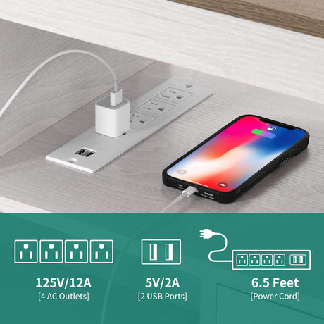 PowerMax 60” L-Shaped Computer Desk with USB & Power Outlets