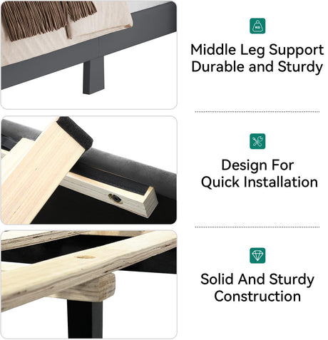 Queen Size Bed Frame Linen Fabric Upholstered Platform with Headboard and Strong