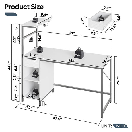 47 Inch Computer Desk with Adjustable Shelves, Simple Writing Desk