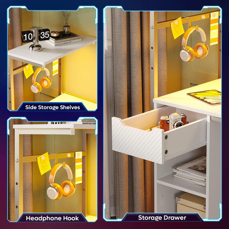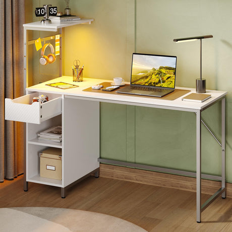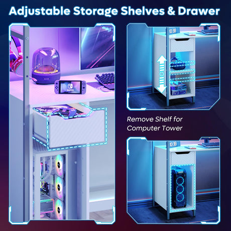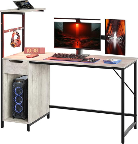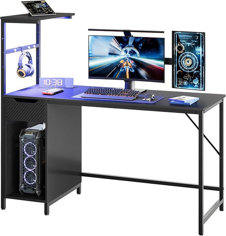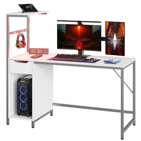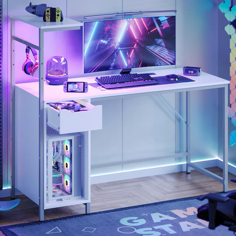 Gaming Desk with Drawer and LED Lights, 48 inch Computer Desk PC Table
