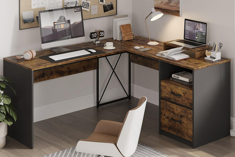 Computer Desk with Drawers, Office Desk with Storage, Industrial Wood Writing Desk