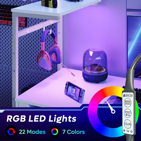 Gaming Desk with Power Outlets, 42" L-Shaped Gaming Desk with LED Lights