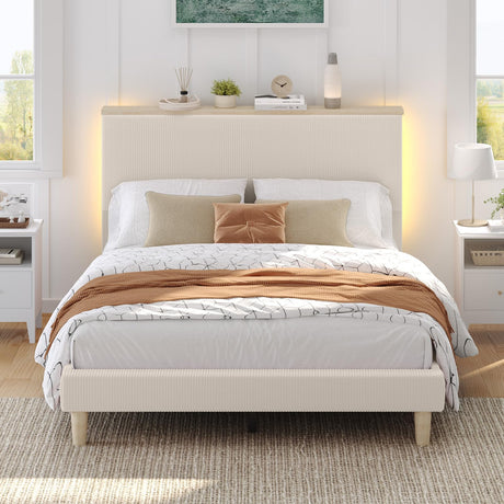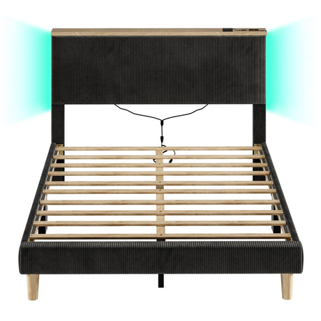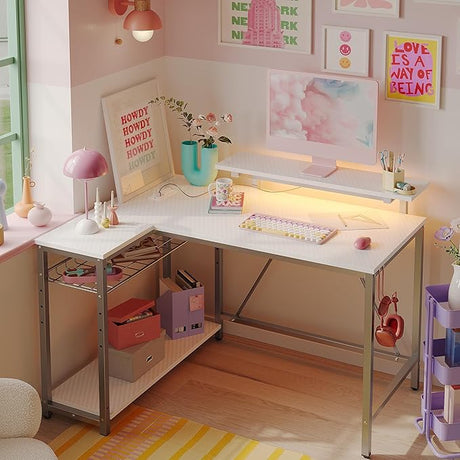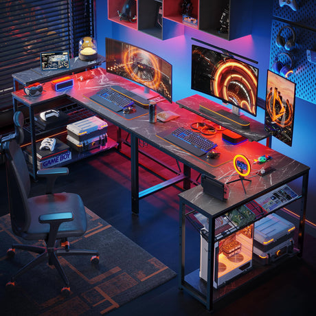 51 L Shaped Gaming Desk with Power Outlets, LED Workstation with 4 Tiers Shelves for Home Office