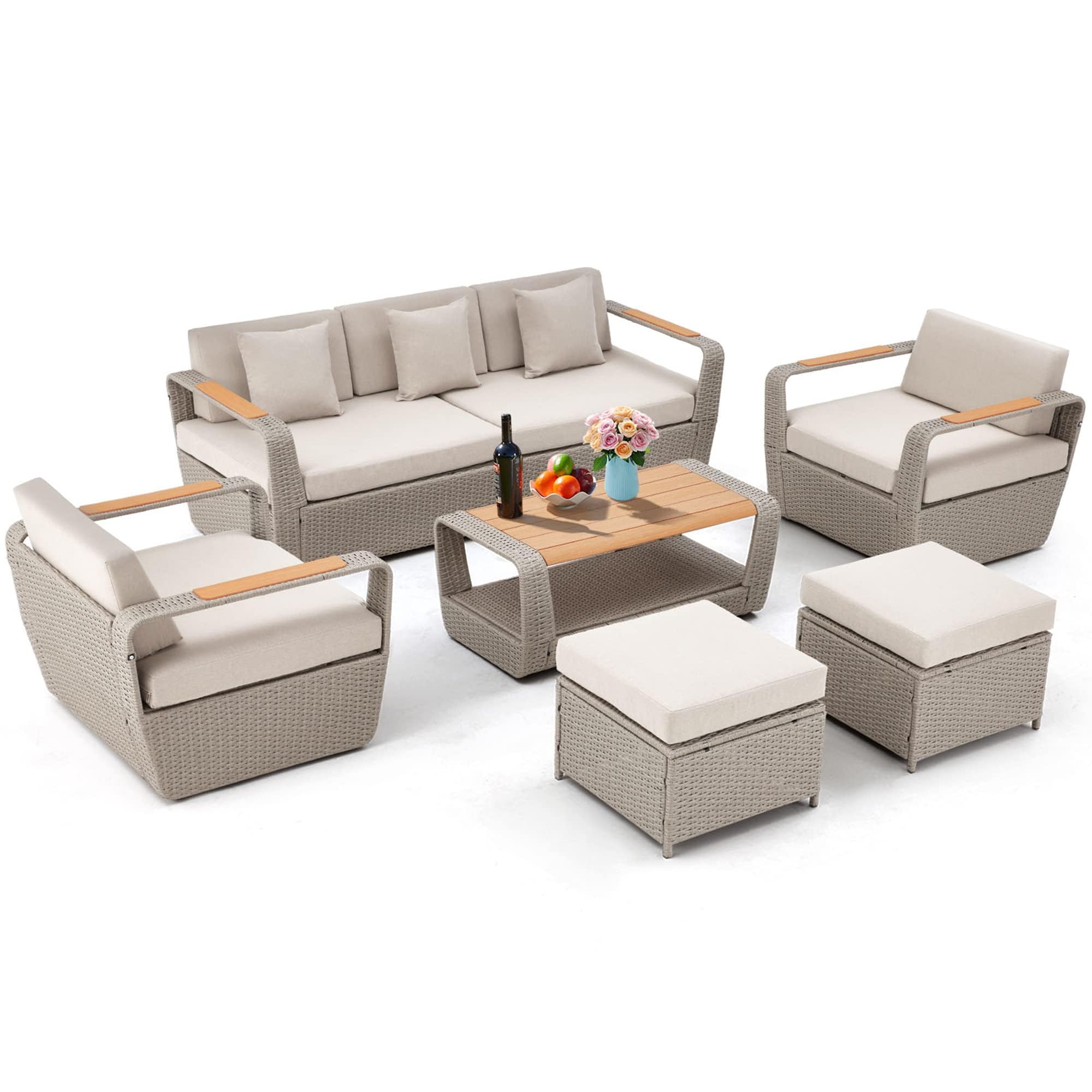 6 Piece Patio Furniture Set, Outdoor Sectional Conversation Rattan Sofa Set