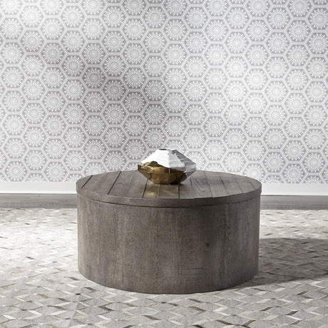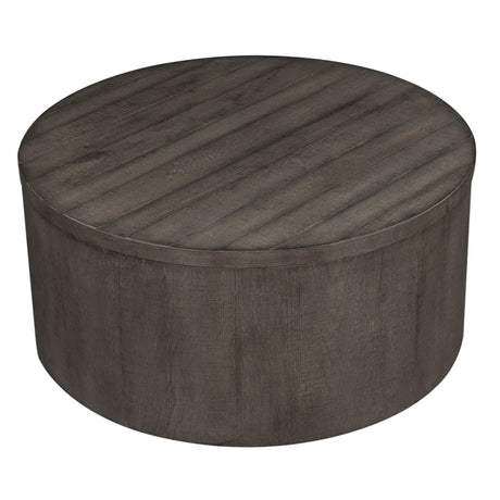 Modern Farmhouse Drum Cocktail Table, W38 x D38 x H18, Dark Gray