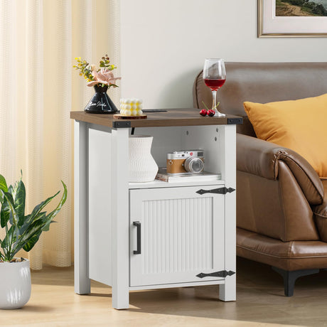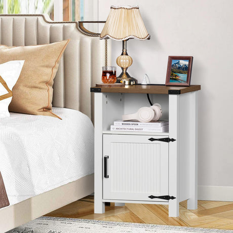 Nightstand with Charger Station and USB Port, 18 Inch Farmhouse Night Stand with Storage Shelf,