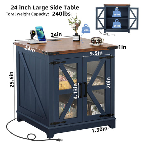 Farmhouse End Table with Charging Station, 24" Large Sofa Side Table