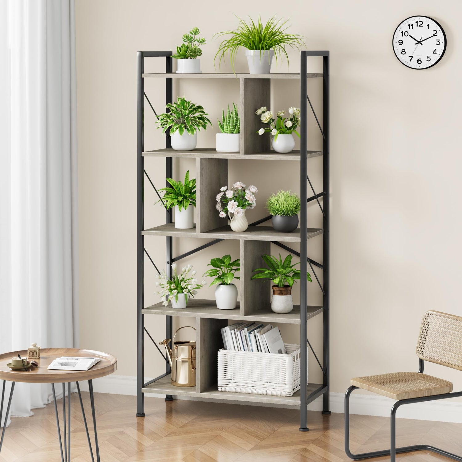- The 5 tier tall book shelf with open shelves provides ample storage space, allowing you to showcase your belongings in various directions. Whether you want to organize books, display family photos, or place potted plants, CDs, or decorative items, it is an excellent choice for any purpose.