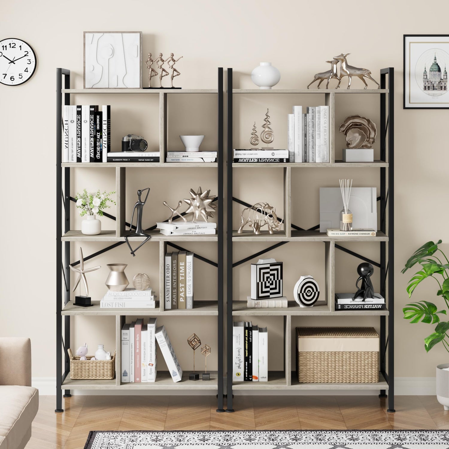 - Sturdy and Durable: Constructed with sturdy MDF and black-coated metal frame, this grey book shelf is built to last. The unique design features metal sidebars and X-shaped back bars, providing constant stability. You can trust the quality and durability of this 5 shelf bookcase, making it a reliable choice for your furniture arrangement.