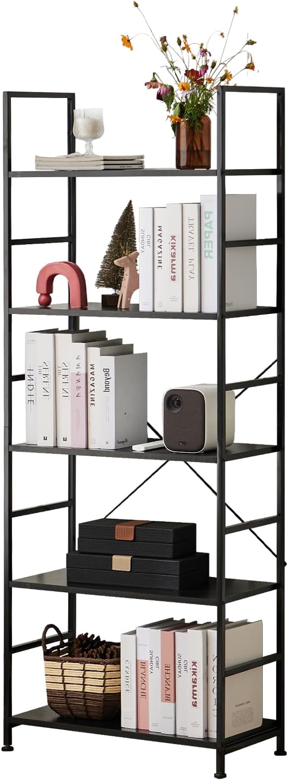 - This 5-tier narrow bookshelf maximizes storage without taking up much floor space, ideal for organizing books, decorations, tools, and more.