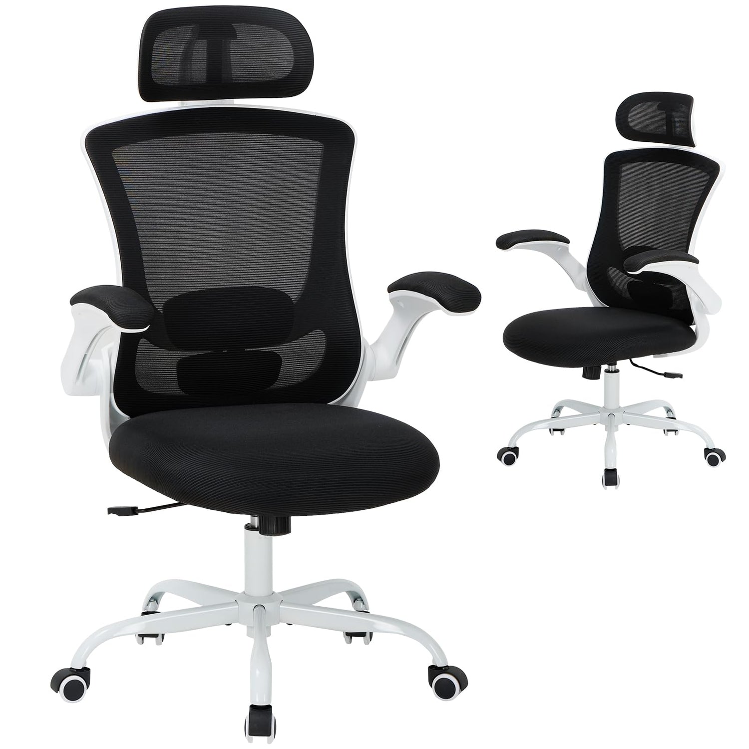 - MULTI-FUNCTIONAL OFFICE CHAIR Experience the next level of comfort with our high back ergonomic office chair, which includes an adjustable headrest, customizable lumbar support, flip-up armrests, and swivel rolling casters. The adjustable height and rocking back and forth make you can find the perfect ergonomic position in working or relaxing. Whether working, studying, or gaming, this ergonomic chair enhances your comfort and productivity