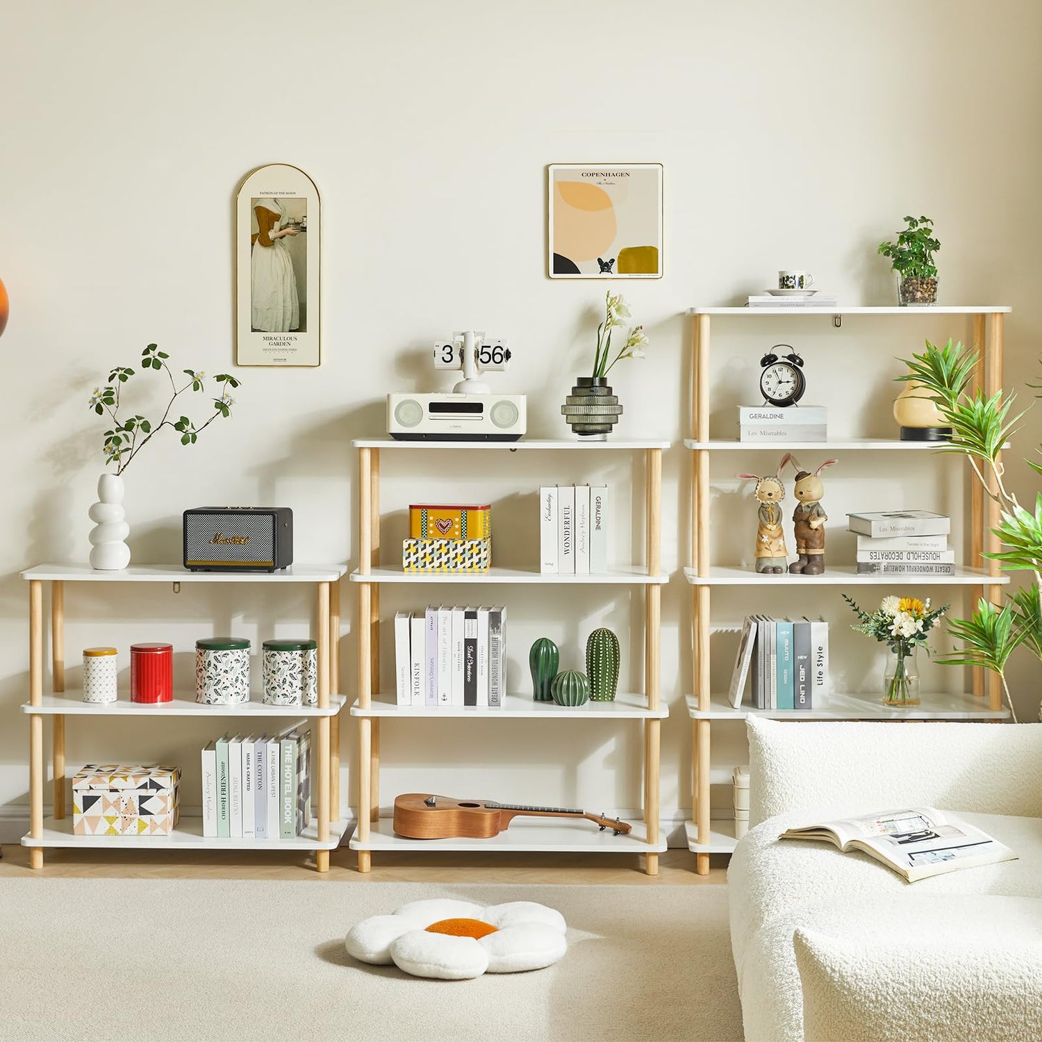 - 1.6cm thick MDF board and 30mm diameter beech wood legs make the open bookshelf very sturdy and has good durability. Each shelf can hold at least 80lbs;this material is waterproof, anti-scratch and super easy to clean.