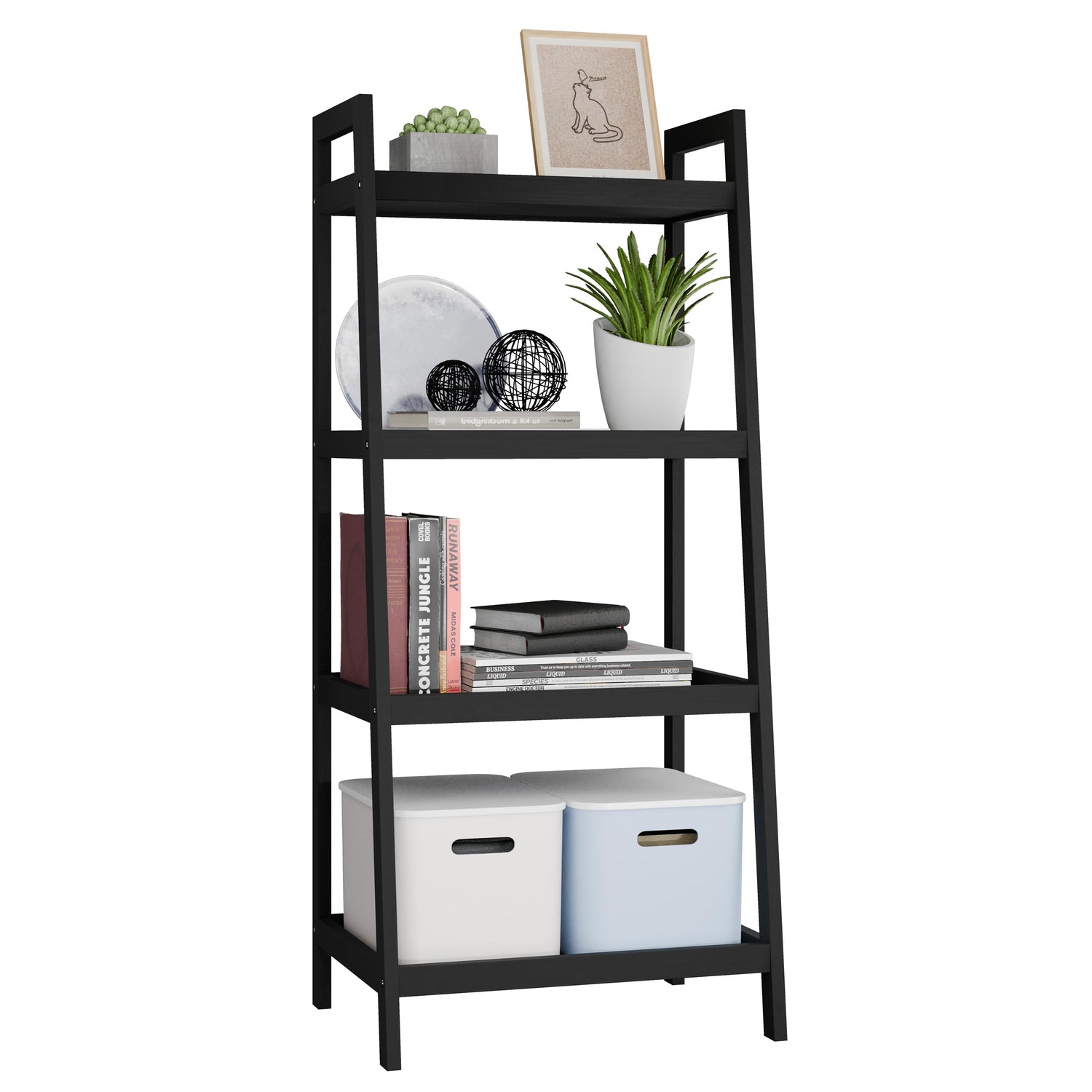 - Our freestanding ladder storage shelf is easy to move, multifunction. It can be used as a bookcase in the living room, as a plant display stand on the balcony, as a towel shelf in the bathroom, as a storage organizer in the kitchen, very wide application
