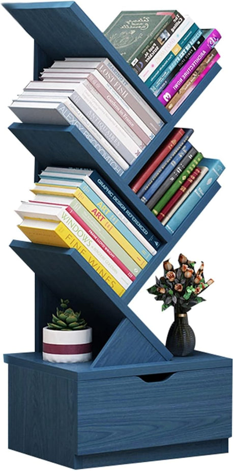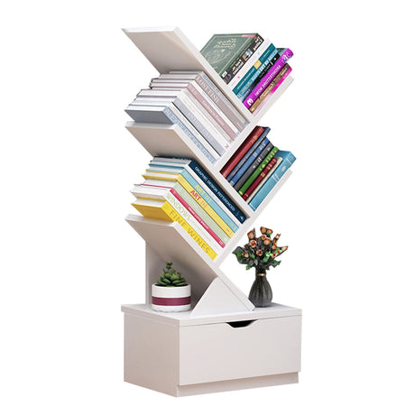 Tree Bookshelf with Drawer, Modern Narrow Bookshelves Storage Rack