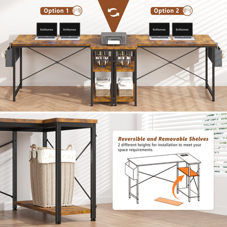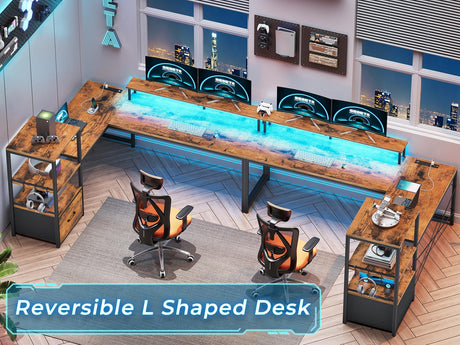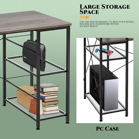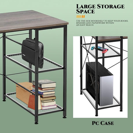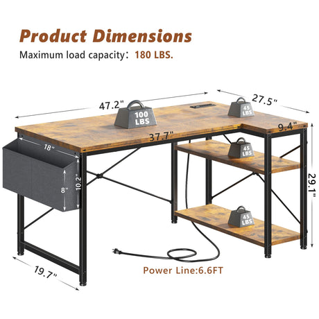 47" Computer Desk with Power Outlets,L Shaped Desk with Storage Shelves