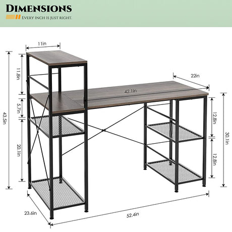 Computer Desk with Shelves 52 Inch, Modern Home Office Desk