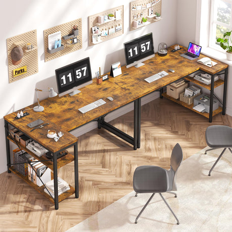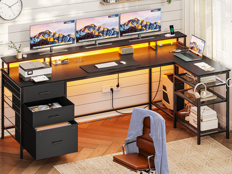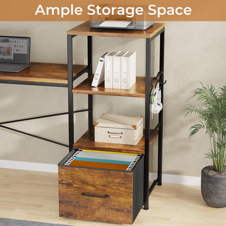 L Shaped Desk, Home Office Desk,68 Inch Corner Desk with File Drawers & Storage Shelves