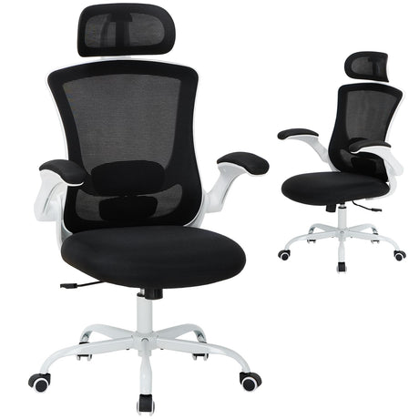 Back Ergonomic Mesh Office Chair with Adjustable Padded Headrest, White/Black