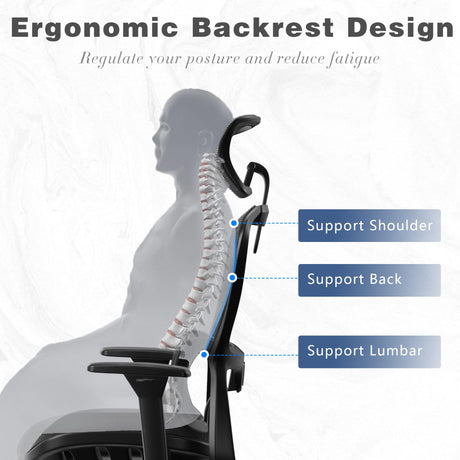 Mesh Office Chair, High Back Executive Desk Chair with Adjustable Headrest and Lumbar