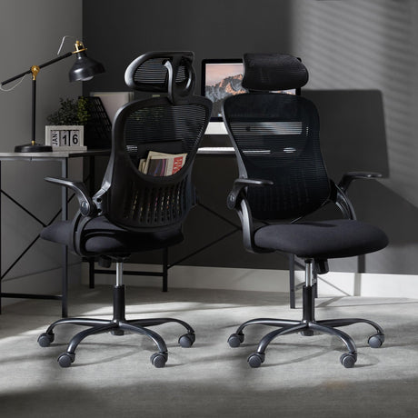Office Mesh Chair with Adjustable Seat Height & Flip-Up Armrests, 360° Swivel Chair