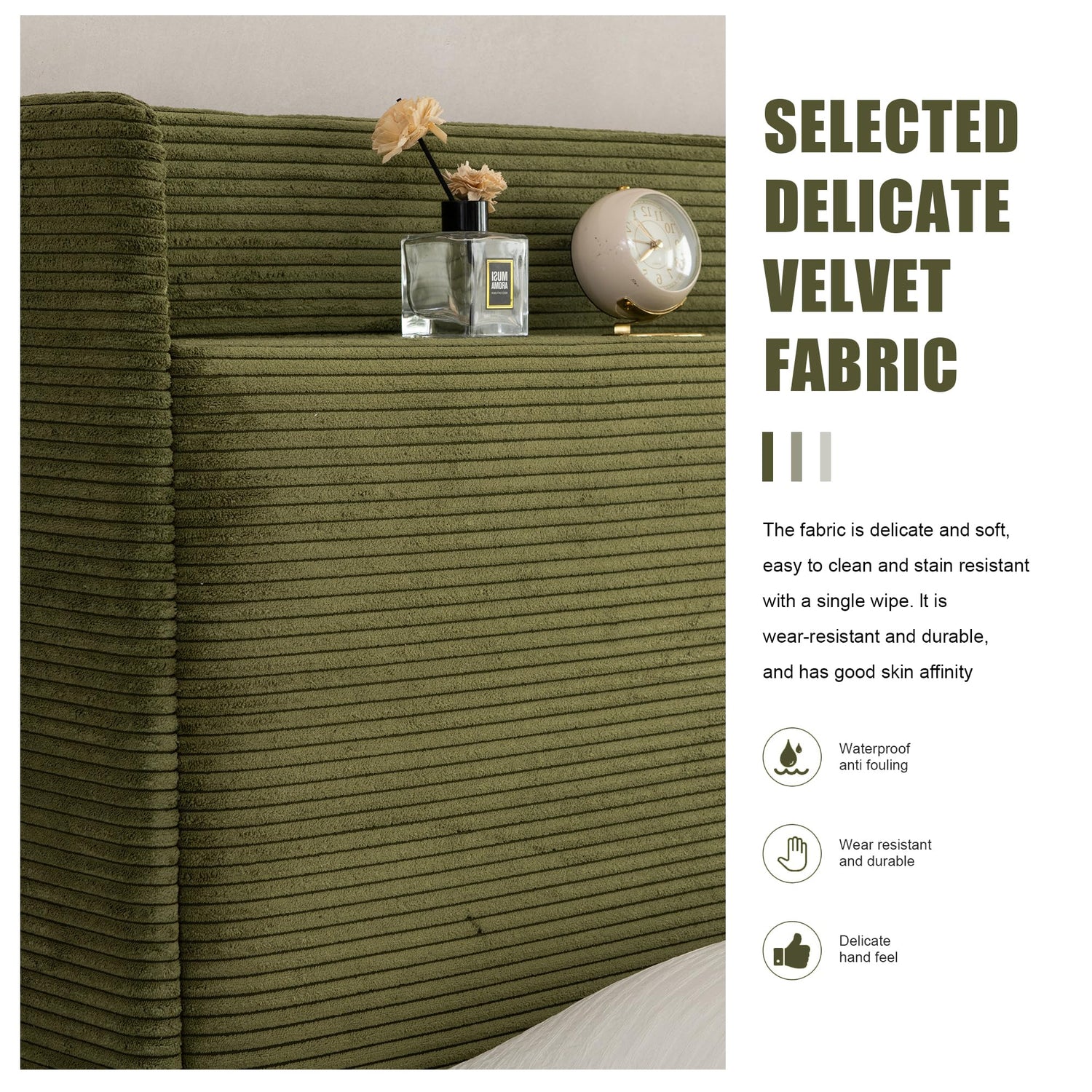 Queen Bed Frame with Storage Drawers - Upholstered Headboard
