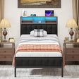 Transform your bedroom with this sophisticated queen-size metal bed frame that seamlessly blends rustic farmhouse charm with contemporary functionality. Featuring a solid platform foundation, integrated LED lighting, and built-in charging station, this bed frame delivers both timeless style and modern convenience.
