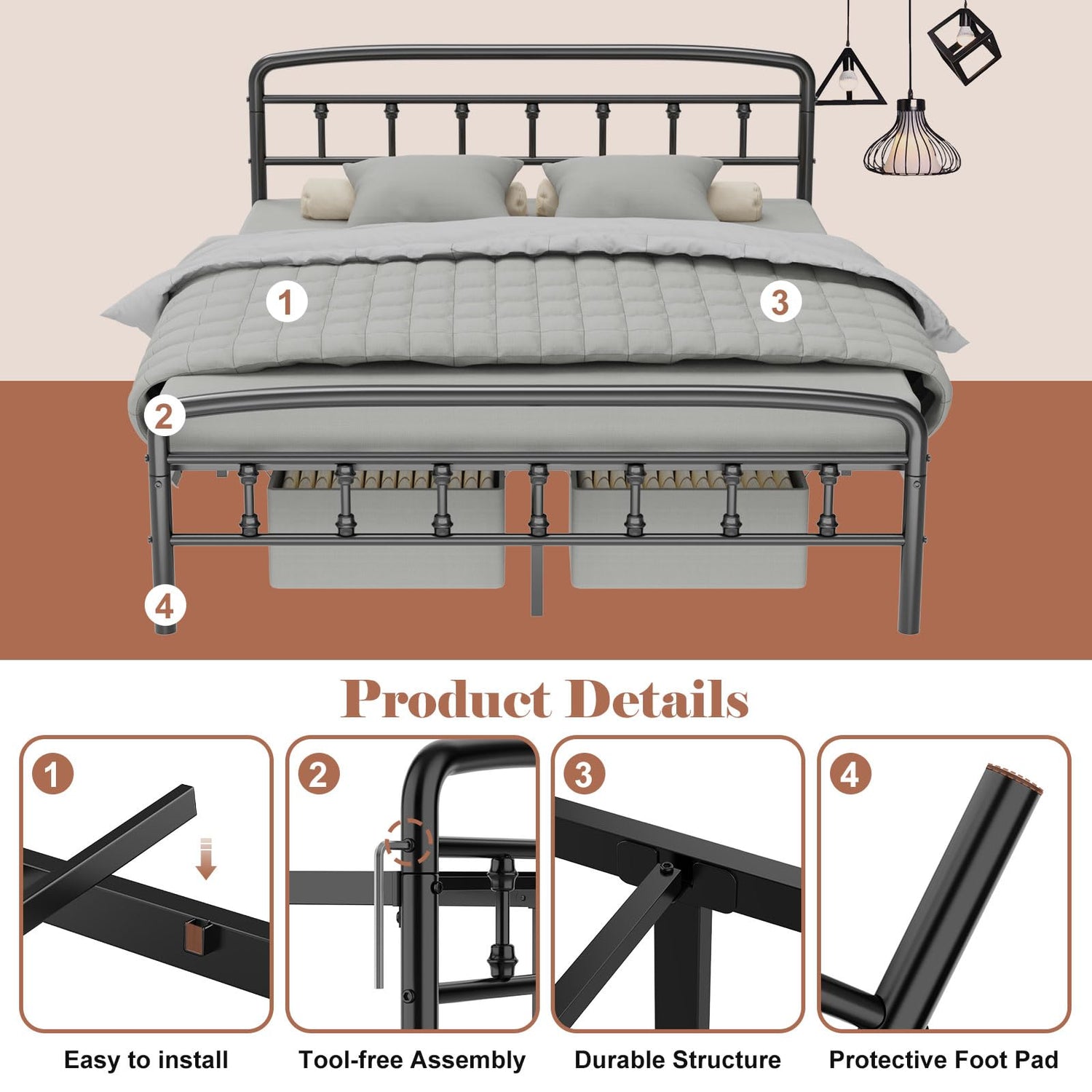 Queen Platform Bed Frame with Headboard - Heavy Duty Metal Bed Frame