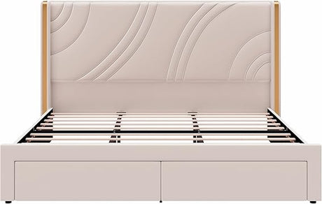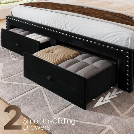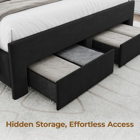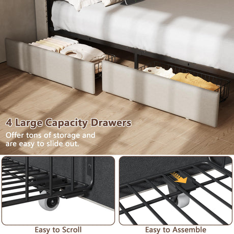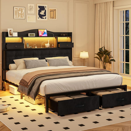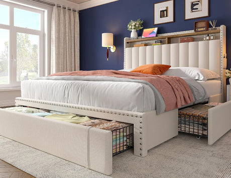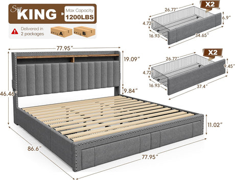 Precio normal Desde $628.99 USDPrecio unitario /AgotadoDisponiblesKing Size Upholstered Bed Frame with 4 Storage Drawers and Headboard Shelves
