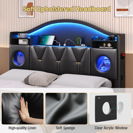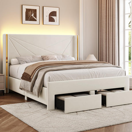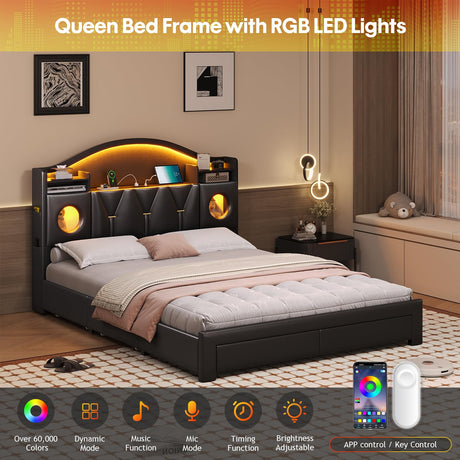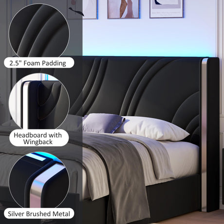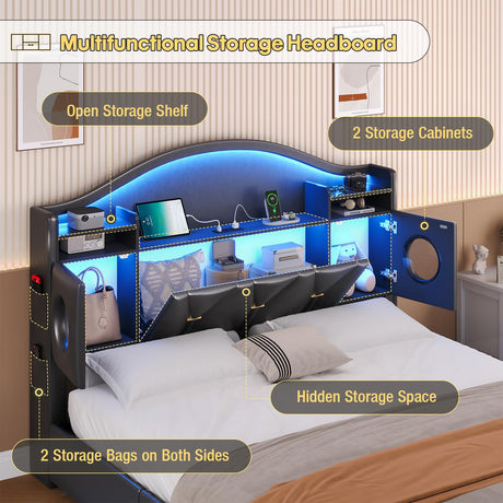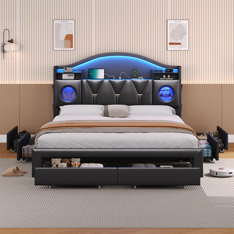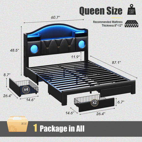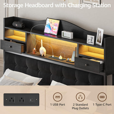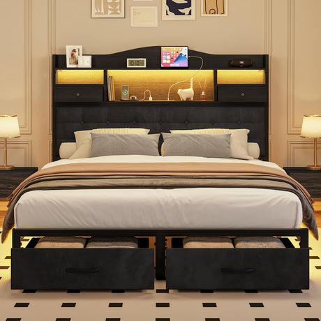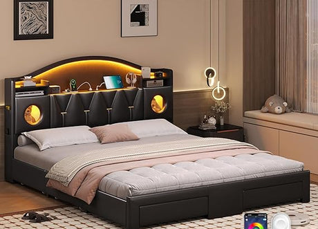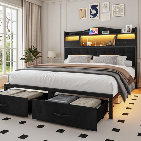 Precio normal $461.99 USDPrecio unitario /AgotadoDisponiblesQueen Bed Frame with Storage Drawers, LED Lights & Charging Station