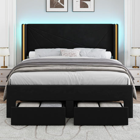 Precio normal Desde $327.99 USDPrecio unitario /AgotadoDisponiblesQueen Size Velvet Upholstered LED Platform Bed with Storage Drawers