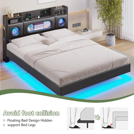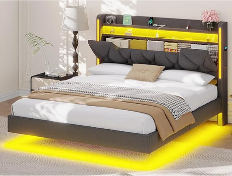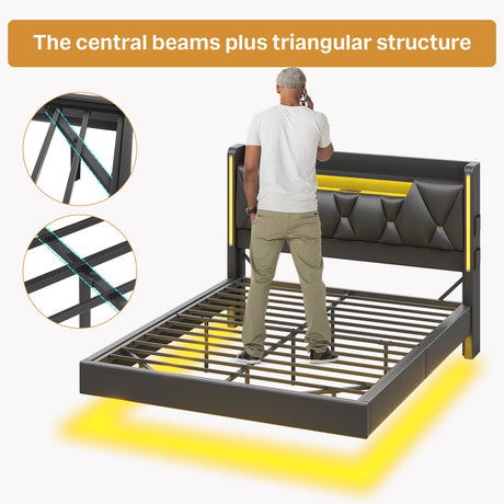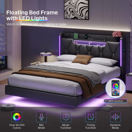 Precio normal Desde $430.99 USDPrecio unitario /AgotadoDisponiblesFloating Queen Bed Frame with LED Lights & Storage Headboard