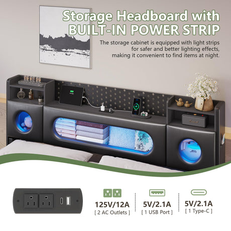 Precio normal Desde $484.99 USDPrecio unitario /AgotadoDisponiblesKing Size Bed Frame with Storage Drawers and Charging Station