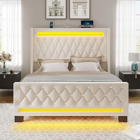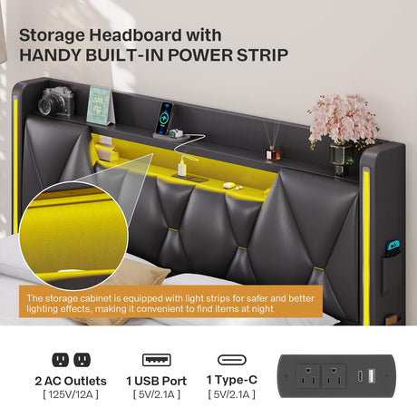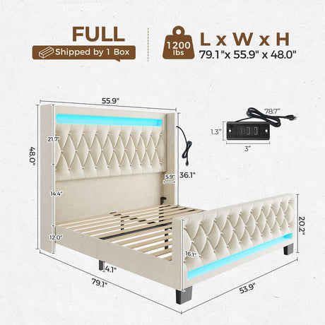 Precio normal Desde $363.99 USDPrecio unitario /AgotadoDisponiblesFull Bed Frame with Storage Headboard and LED Lights