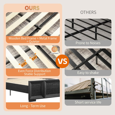 Precio normal Desde $297.99 USDPrecio unitario /AgotadoDisponiblesQueen Bed Frame with Wood Headboard and Footboard - Black