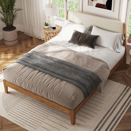 Precio normal Desde $394.99 USDPrecio unitario /AgotadoDisponiblesSolid Wood Queen Bed Frame with Headboard - Beige Walnut