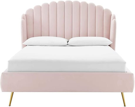 Precio normal $227.99 USDPrecio unitario /AgotadoDisponiblesLana Queen Wingback Platform Bed - Dusty Rose Velvet