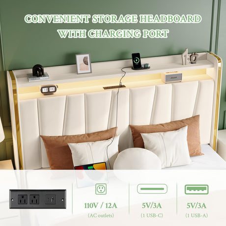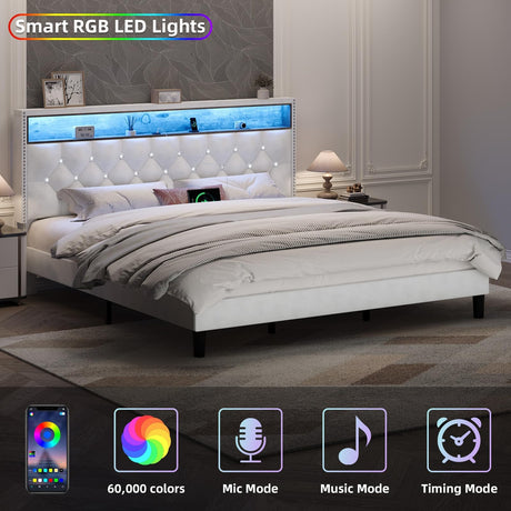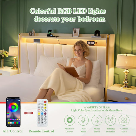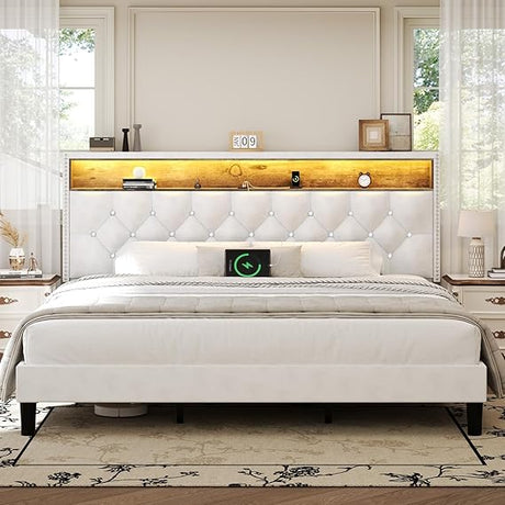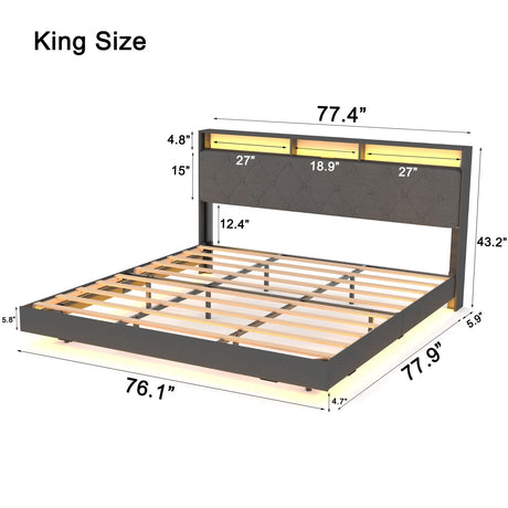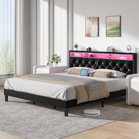 Precio normal Desde $251.99 USDPrecio unitario /AgotadoDisponiblesKing Size Bed Frame with LED Lights and Storage Headboard