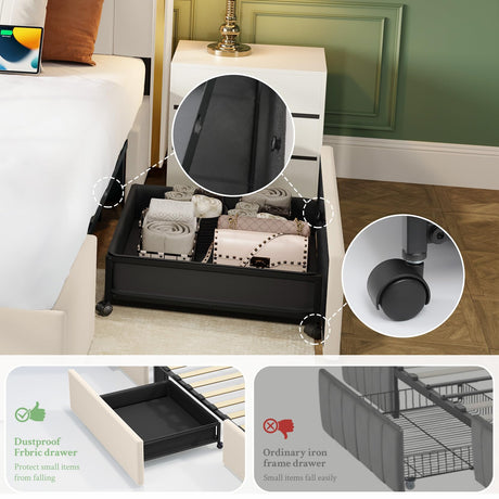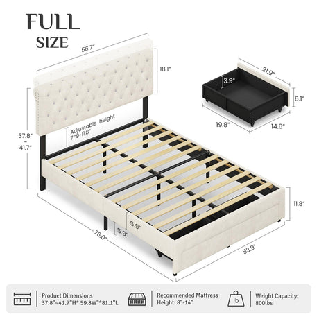 Precio normal Desde $161.99 USDPrecio unitario /AgotadoDisponiblesFull Bed Frame with Storage Drawer and Adjustable Headboard