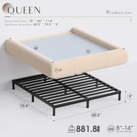 Precio normal Desde $142.99 USDPrecio unitario /AgotadoDisponiblesCloud Queen Bed Frame - Easy Assembly with Rounded Corners