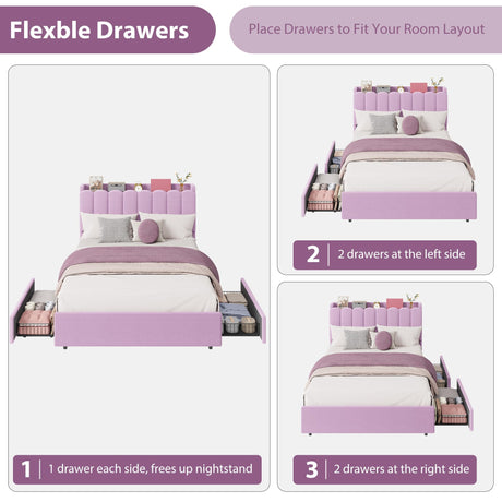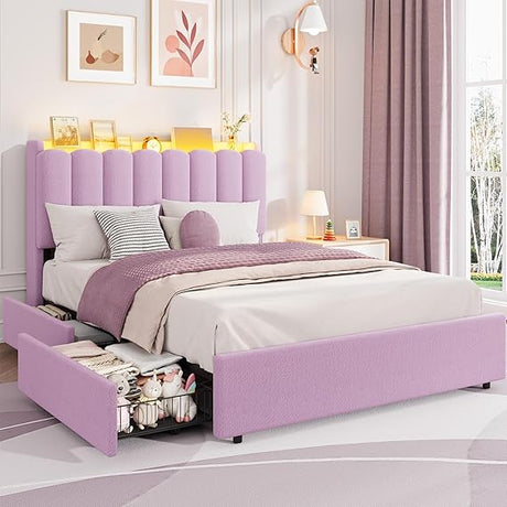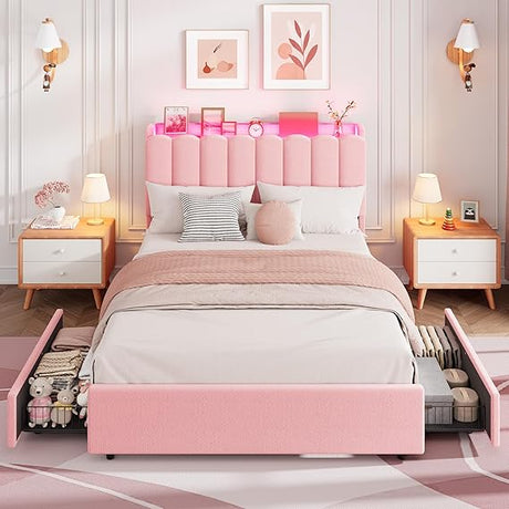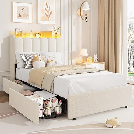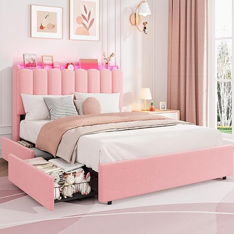 Precio normal Desde $538.99 USDPrecio unitario /AgotadoDisponiblesFull LED Bed Frame with Storage Drawers & Bookcase Headboard