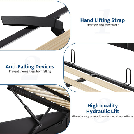 Precio normal Desde $682.99 USDPrecio unitario /AgotadoDisponiblesKing Bed Frame with Lift-Up Storage - Upholstered Velvet Platform Bed