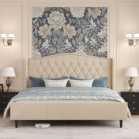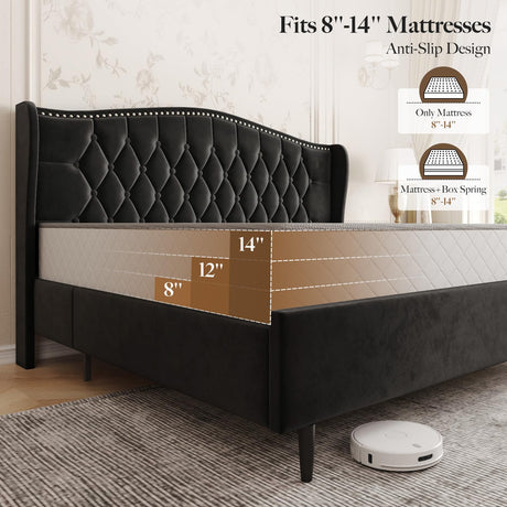 Precio normal Desde $232.99 USDPrecio unitario /AgotadoDisponiblesKing Velvet Platform Bed with 58" Tufted Wingback Headboard
