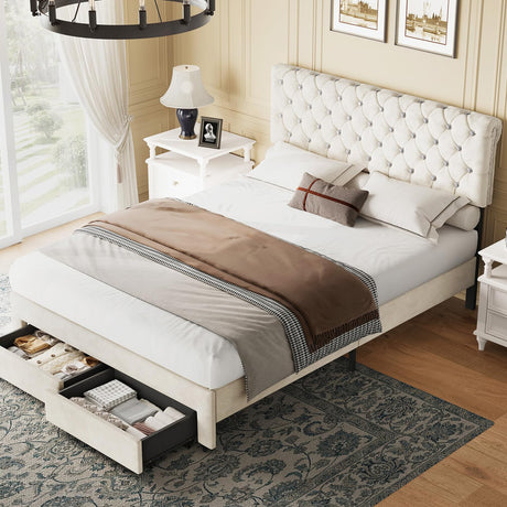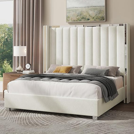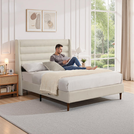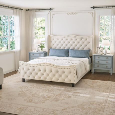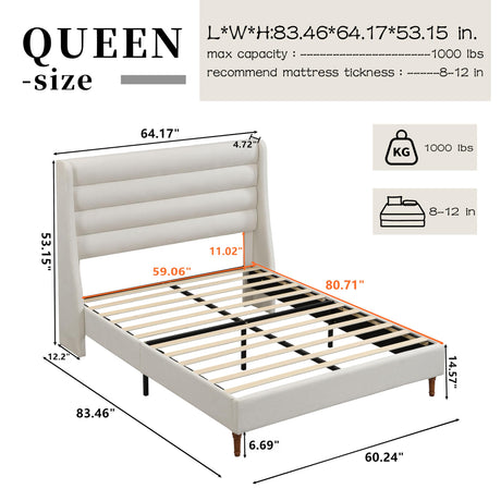 Precio normal Desde $601.99 USDPrecio unitario /AgotadoDisponiblesQueen Upholstered Bed with Tufted Wingback Headboard