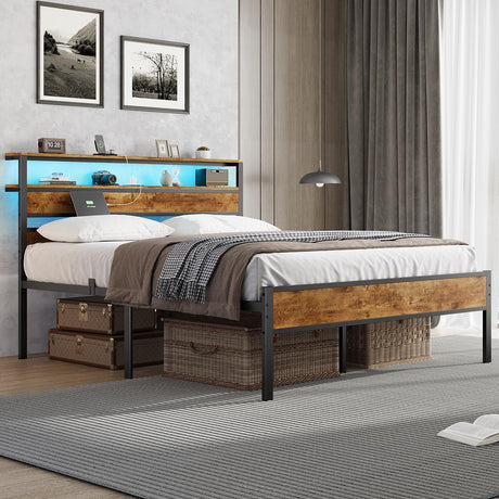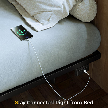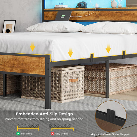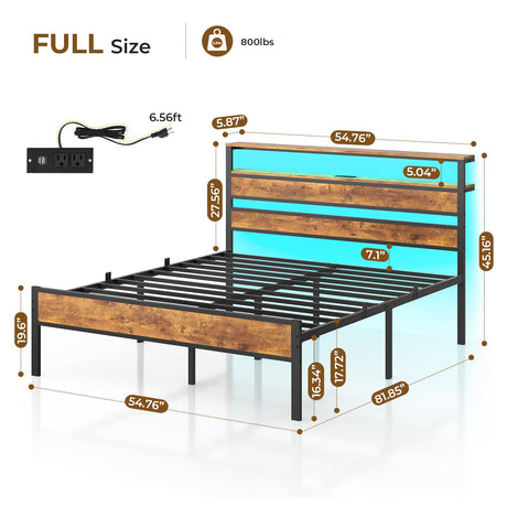 Precio normal $340.99 USDPrecio unitario /AgotadoDisponiblesFull Bed Frame with LED Lights & Charging Station