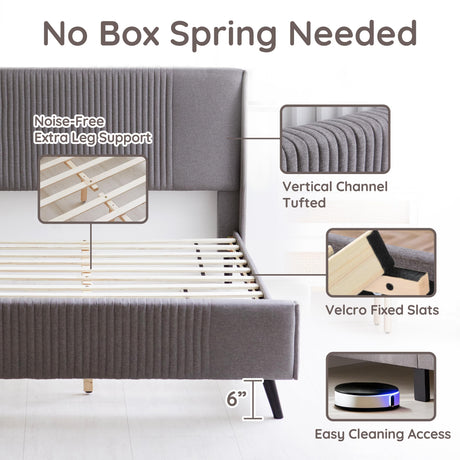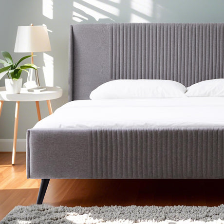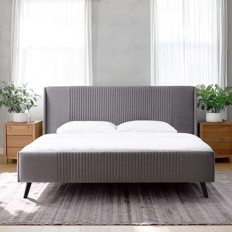 Precio normal Desde $394.99 USDPrecio unitario /AgotadoDisponiblesSunset King Platform Bed with Wingback Headboard - Gray Fabric Upholstered