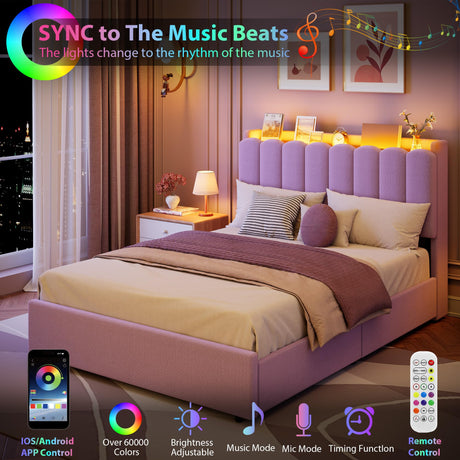 Precio normal Desde $289.99 USDPrecio unitario /AgotadoDisponiblesQueen Platform Bed Frame with Storage Drawers & LED Headboard