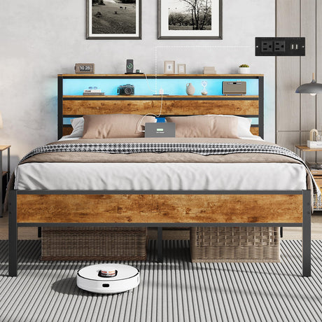 Precio normal $556.99 USDPrecio unitario /AgotadoDisponiblesQueen Bed Frame with Headboard and Storage