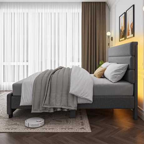 Precio normal Desde $273.99 USDPrecio unitario /AgotadoDisponiblesKing Size Upholstered Platform Bed Frame with LED Lights